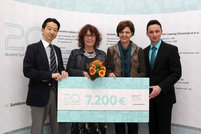 Simbolni ček je iz rok predsednika Sumit skupine Slovenija, g. Terumoto Yamagata prevzela ga. Anita Ogulin, ki velja za dobrega angela številnim ljudem v stiski.