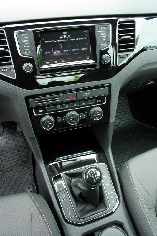 Golf Sportsvan je za 12,6 cm višji od Golfa, zato je strop nekoliko višje nad glavami, a so tudi sedeži postavljeni nekoliko višje. Višje sedenje pa pomeni tudi dobro preglednost, kar mu bo marsikdo štel v dobro. Seveda je zaradi tega na prostornosti pridobil prtljažni prostor. Že v osnovi je za 75 litrov večji od predhodnika in meri okroglih 500 litrov. Zadnja klop je po tretjini deljiva in bogato vzdolžno pomična (18 cm). Povsem naprej pomaknjena prispeva še dodatnih 90 litrov prostornine. Z zloženimi sedežnimi naslonjali pa je v prtljažniku prostora kar za 1520 litrov, kar je v primerjavi s predhodnikom za 70 litrov več.