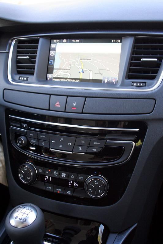 Notranjost je bogatejša za velik barvni zaslon na dotik (na drugi stopnji opeme Active), ki prevzema tudi funkcijo nekaterih stikal. Posebnost za slovenski trg je navigacija že v drugem opremskem paketu (sicer v najvišjem). Model 508 pa je po novem bogatejši tudi za en (in edini) odlagalni predalček na sredinski konzoli. Končno! Bolje eden kot nič!