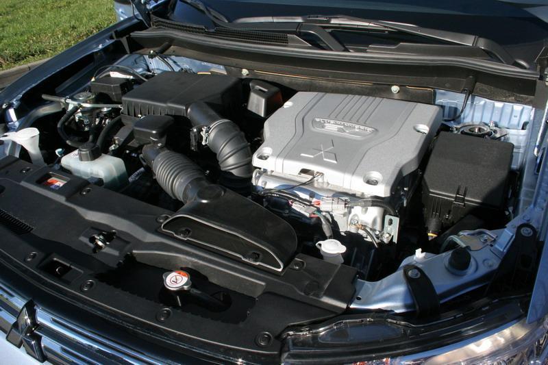 Pogonski sklop je urejen tako, da je spredaj vgrajen bencinski motor (2,0/89 kW/190 Nm), ki lahko poganja (samo) prednji kolesi. Poleg njega je vgrajen še 60 kW-ni elektromotor, ki prav tako lahko poganja prednji kolesni par. Med zadnji kolesni par je vgrajen še en 60-Kw elektromotor, ki žene zadnji kolesi. Nad pogonom seveda bdi elektronika, ki skrbi za pravilno in pravočasno porazdelitev moči in navora. Zato je Mitsubiski Outlander PHEV lahko pravi »terenec« z uporabnim štirikolesnim pogonom. Tudi z gumbom za »ročni« vklop. Za prenos z bencinskega motorja skrbi robotizirani menjalnik. In, kar ni zanemarljivo, uporabljamo ga lahko tudi kot vlečno vozilo za priklopnik do 1500 kg.