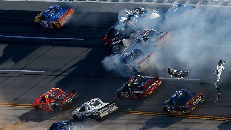 Pred kratkim so se podobni nesreči v ameriški seriji NASCAR tovornjakov izognili, tokrat pa je bilo drugače. Skupno je 13 od 36 zaključilo dirko s poškodbami. Voznik Ben Rhodes je zapeljal v steno, njegov tovornjak pa je zaneslo naravnost v skupino drugih dirkačev. Možnosti za izogib oviri ni bilo. Deli so leteli naokrog in draga … Nadaljujte z branjem Huda nesreča v Talladegi, 13 poškodovanih vozil! – VIDEO