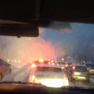 Sneženje na petek 13. je v Sloveniji povzročilo prometni kolaps. Številni zdrsi vozil, padci oseb ter čakanje v zastojih tudi do 8 ur.