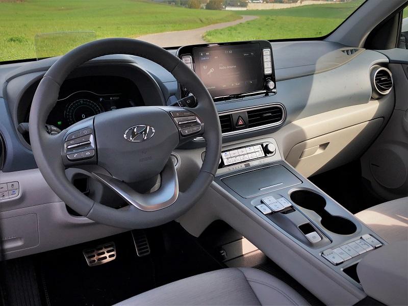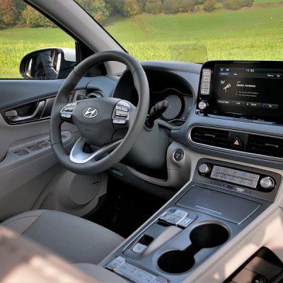 Bolj zmogljiva je Kona, ki jo poganja motor s 150 kW (204 KM), baterija pa ima kapaciteto 64 kWh. S to naj bi z enim polnjenjem prevozili do 482, kar pomeni realnih 400 kilometrov. Še ena posebnost je sistem za regeneracijo energije, ki se sprošča med zaviranjem. Ta omogoča prilagajanje intenzivnosti delovanja, kar voznik nastavlja kar preko obvolanskih ročic.
