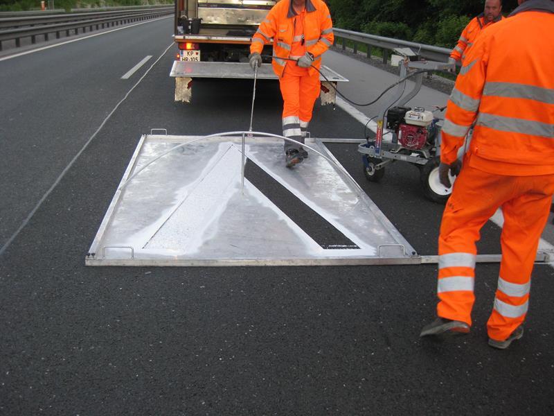 DARS je v začetku junija 2020 s temi označbami in tablami opremil odseka avtoceste A1 med Logatcem in Vrhniko proti Ljubljani ter med Logatcem in Uncem proti Kopru. Na terenu je delo potekalo tako, da so vzdrževalci izvedli vso horizontalno signalizacijo. Avtocestna vzdrževalna baza Postojna je dela izvajala celo v nočnem času, na obeh odsekih so skupno narisali 228 strešic, delo pa je izvajalo osem delavcev. Vertikalno signalizacijo je izdelal in postavil usposobljen izdelovalec po pogodbi.