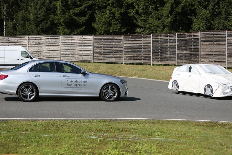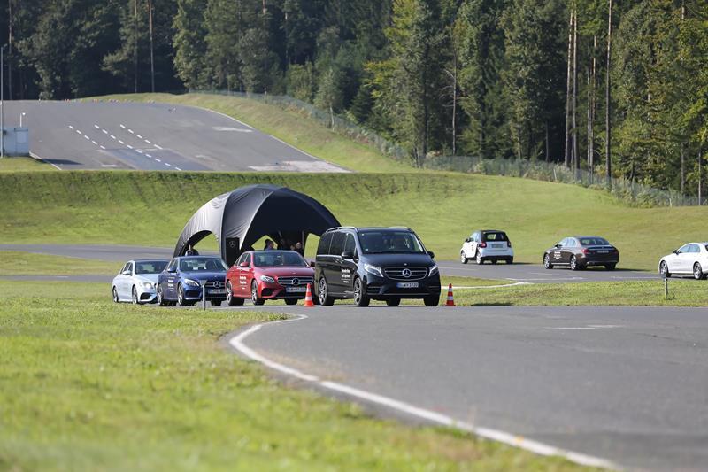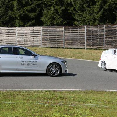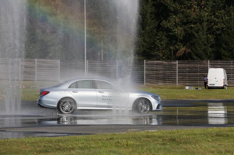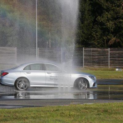 Nato smo se preselili na tehnični del, kjer smo na mokri podlagi poskušali ujeti ”zvezde”. Enim je šlo odlično, drugim pa niti ne. Naslednja postojanka je bila predstavitev naprednih sistemov novega razreda E. Popolnoma samodejno parkiranje, Distronic Plus četrte generacije, ki ustavljati tako v mestu kot na avtocesti. Prepozna pešca in panično zavira, vozi po omejitvah če tako želi voznik in pazi na ostale udeležence v križišču ter v primeru možne nezgode ukrepa z zaviranjem. Sistem se imenuje Cross Traffic Alert.