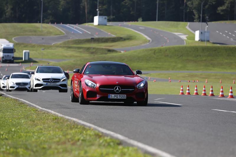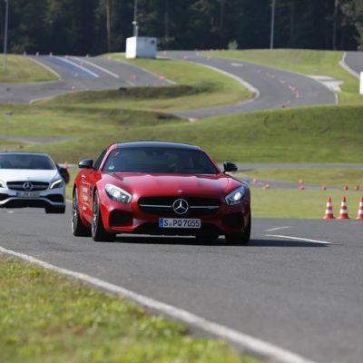 Na hitrem poligonu so nam družbo delali 45 AMG, CLA 45 AMG, C in C coupe AMG, za piko na i pa še nabrita AMG GT in AMG GT S. Ta imata pod pokrovom nameščen 4,0-litrski prisilno polnjeni osemvaljni motor, ki razvije kar 340 kilovatov (462 KM) in 600 Nm navora oziroma 375 kilovatov (510 KM) in 650 Nm navora v primeru različice AMG GT S.