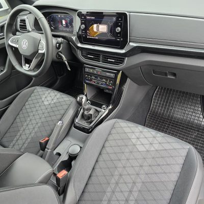 V notranjosti je prenovljeni T-Cross opremljen s prostostoječim osrednjim informacijskim zaslonom na dotik z največ 9,2-palcev premera in 8-palčnimi digitalnimi merilniki, ki so zdaj standardni pri vseh različicah. Sicer bistvenih oblikovnih sprememb v kabini ni, so pa površine armaturne plošče, obloge vrat in sedežev odete v kakovostnejše materiale.