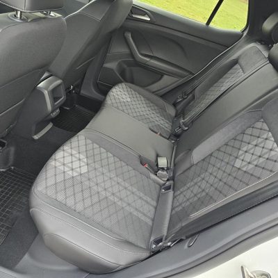 T-Cross ohranja svoj sloves prostornega in vsestranskega kompaktnega SUV-ja, saj sprejme do pet oseb in ponuja prilagodljivo zadnjo klop s pomikom do 140 mm. Prtljažni prostor v standardni postavitvi sprejme od 385 do 455 litrov prtljage, z zloženo drugo vrsto pa se prostor razširi na 1.281 litrov volumna. V nekaterih različicah je mogoče za lažji prevoz daljših predmetov (do 2.398 mm) zložiti tudi sprednji potniški sedež.