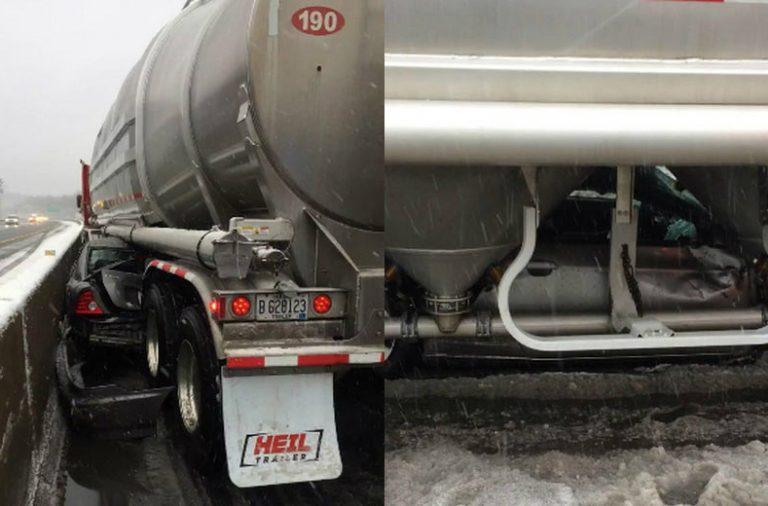 S Hondo Civic se je uklestil pod tovornjak: Čudež se je zgodil kasneje! Možakar je na spolzkem zasneženem cestišču izgubil oblast nad vozilom, trčil v…