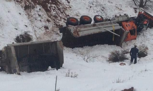 VIDEO: Tovornjak izsilil snežni plug, ga zadel in zbil v prepad! Nesrečo pluga je zakrivil tovornjakar, ki ga je zadel in tovornjak s snežnim plugom j…