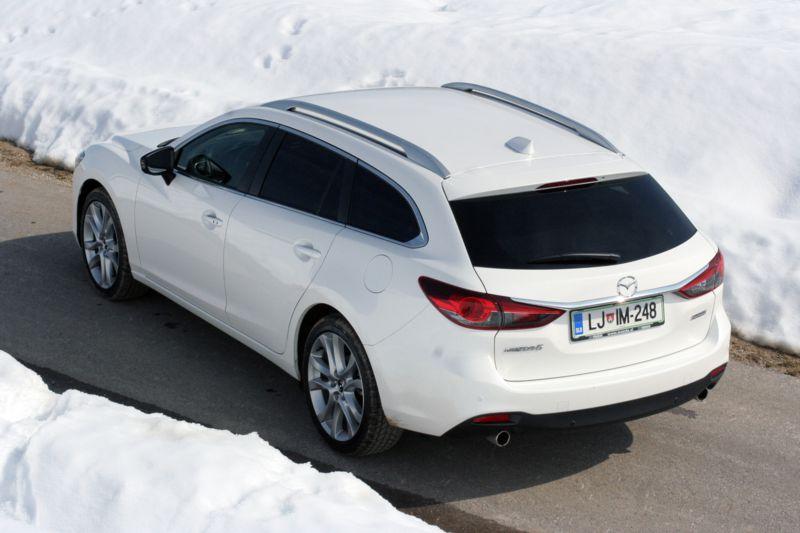 Oblikovalci niso pozabili niti na zadek, ki lahko brez sramu konkurira Alfi Romeo 159. S tretjo generacijo je Mazda6 zrasla v dolžino, nekaj pa je tudi pridobila v medosnem delu. Kljub temu se ni nič zredila, ravno nasprotno. Z vpeljavo tehnologije SkyActive se je ‘šesticina’ teža zmanjšala.