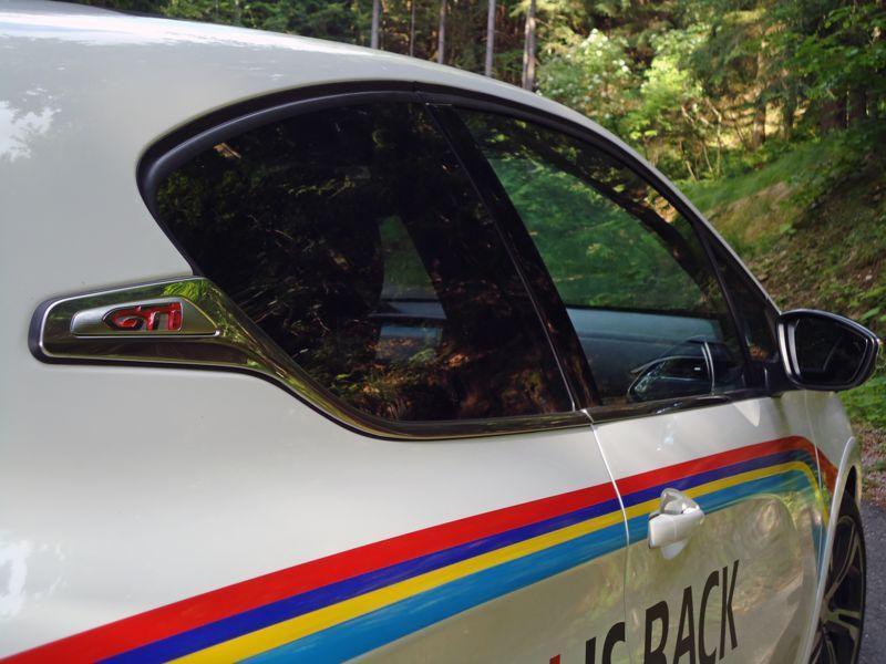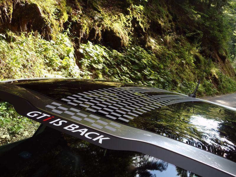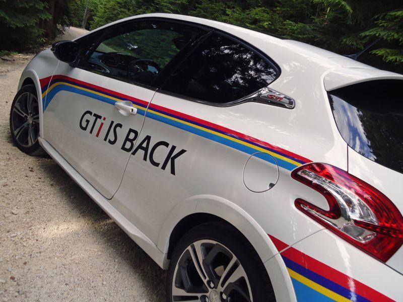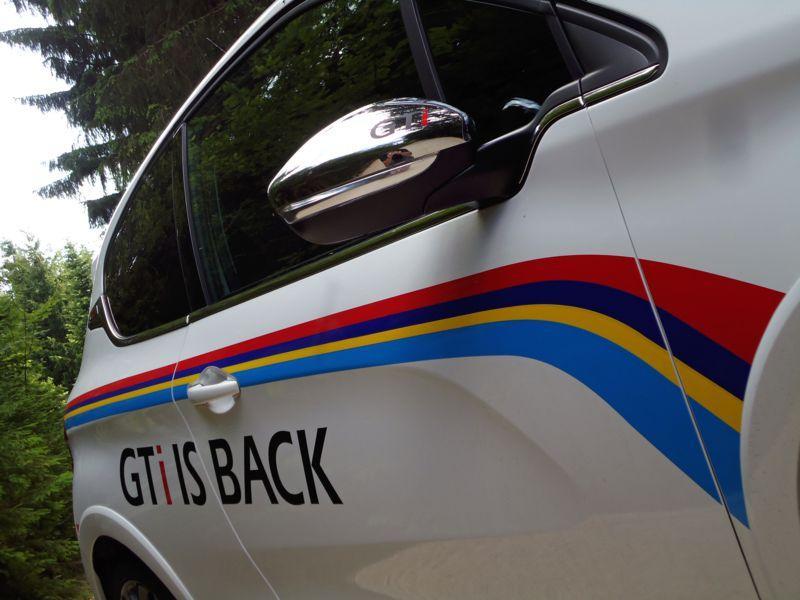 Testno vozilo je bilo odeto v belo barvo, polepljeno z dirkalnimi nalepkami in napisi GTi is back (GTi je nazaj). V kolikor je v vaših srcih zakopana rally nostalgija in želite biti opaženi, dekoracija pripada na vaš seznam želja. Vedite le, da boste z njim na vsakem parkirišču staknili odtise dlani radovednežev na stekla ter da se bo fotografija vašega dirkalnika tu in tam pojavila na socialnih omrežjih.