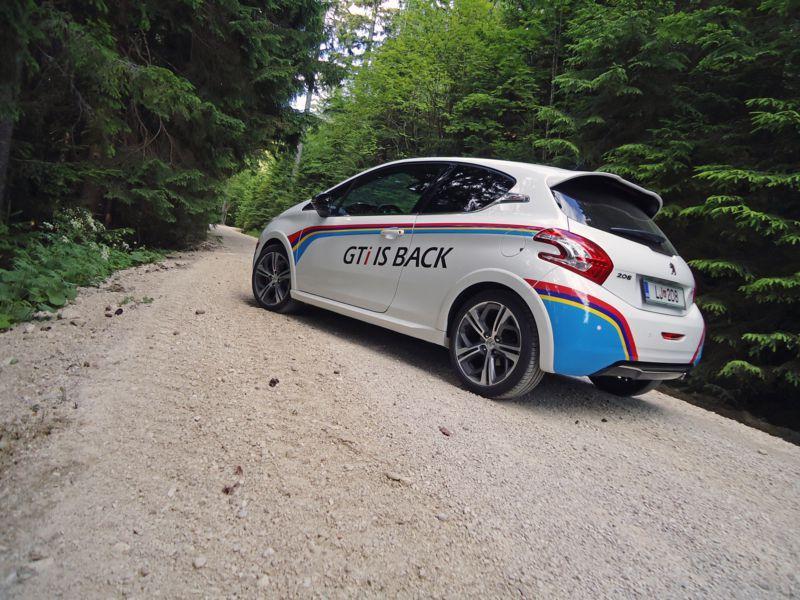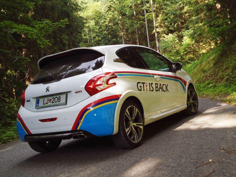 Francoska znamka z emblemom leva se je odločila za klasično zasnovo vroče kombilimuzine (hot hatch-ang.). Osnovo za novodobnega naslednika legendarnega GTi-ja predstavlja model 208. Moderni šarmer je dobil nekaj športnih dodatkov, ki njegove lepote ne oskrunijo. Zajetni sprednji odbijač, stranski pragovi, usmerjevalnik zraka in izpušna cev z dvojnim zaključkom, malčka le malenkost poudarijo. Izpod 17-palčnih platišč se bohotijo rdeče obarvane zavorne čeljusti, na boku pa se nahaja legendarna oznaka na kromirani letvici, GTi. Nič kaj dramatičnega ali divjega, kot bi od »hot hatcha« pričakovali.