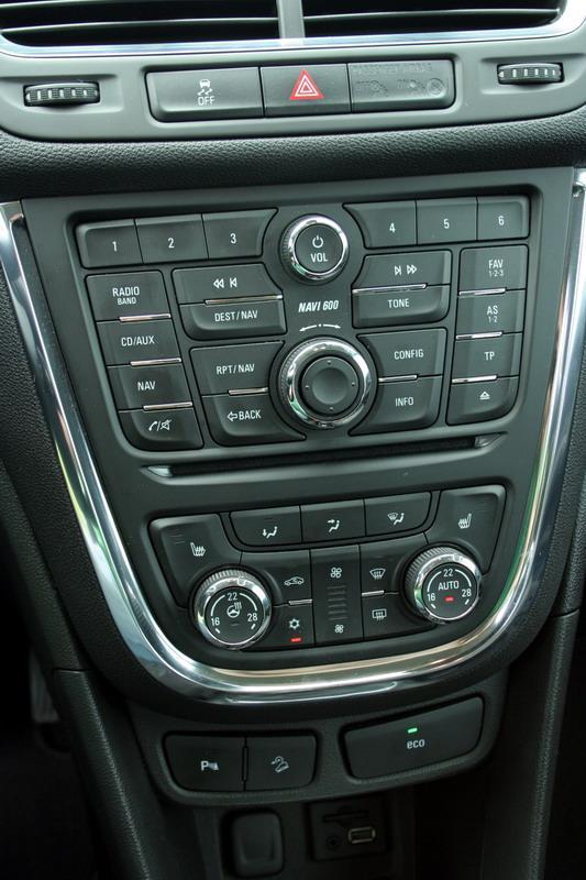 Med uporabno opremo, ki jo je premogla testna Mokka je vsekakor 230 voltna električna vtičnica na zadnjem delu sredinskega greben, ki z največjo dovoljeno močjo 150 W zlahka napaja prenosni računalnik ali kakšno igralno napravo. Primerno za tiste, ki na poti tudi delate ali pa hočete le zamotiti otroke…