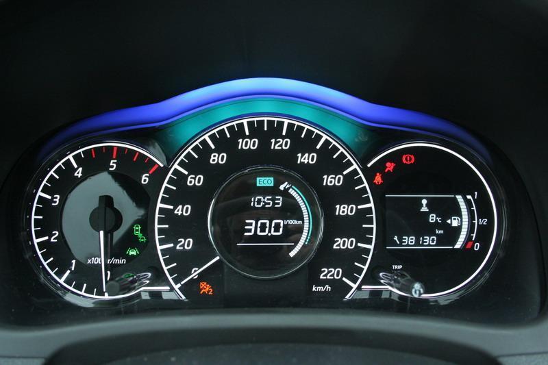 Opozarja, da je vključena funkcija eco (gumb za prestavno ročico), pod njo pa je še dodatno zeleno polje, katerega intenzivnost narašča in pada, glede na to kako varčno vozimo. V okroglem sredinskem prikazovalniku, kjer je tudi potovalni računalnik, se izrisuje še graf, ki ponazarja kako močno pritiskamo na stopalko plina. Sicer dokaj enostaven sistem, a dovolj opazen, da zna biti tudi učinkovit. Sicer pa je ob vključenem eco programu precej manj odziven tudi pedal plina. Kar že avtomatsko pomeni, da se je za več poskočnosti treba bolj potruditi. In ker vemo, da več dela mnogim ne leži, je rezultat tu…