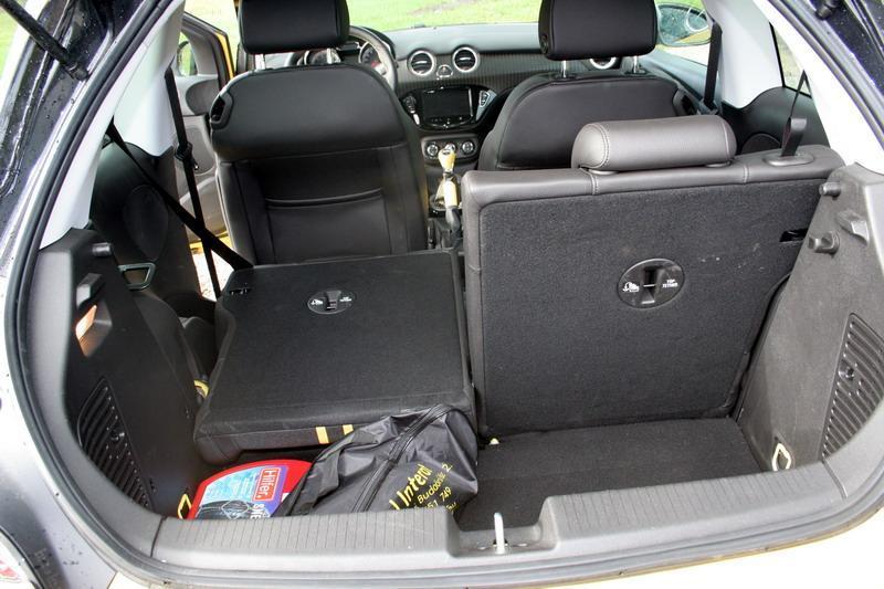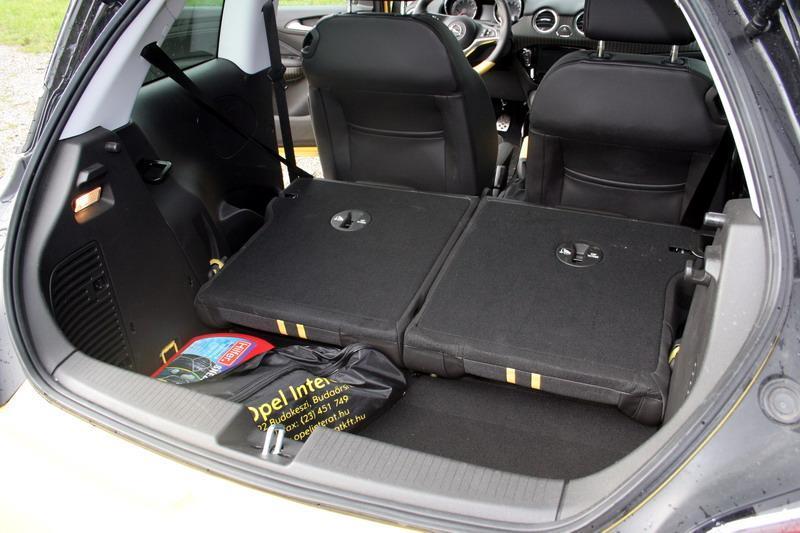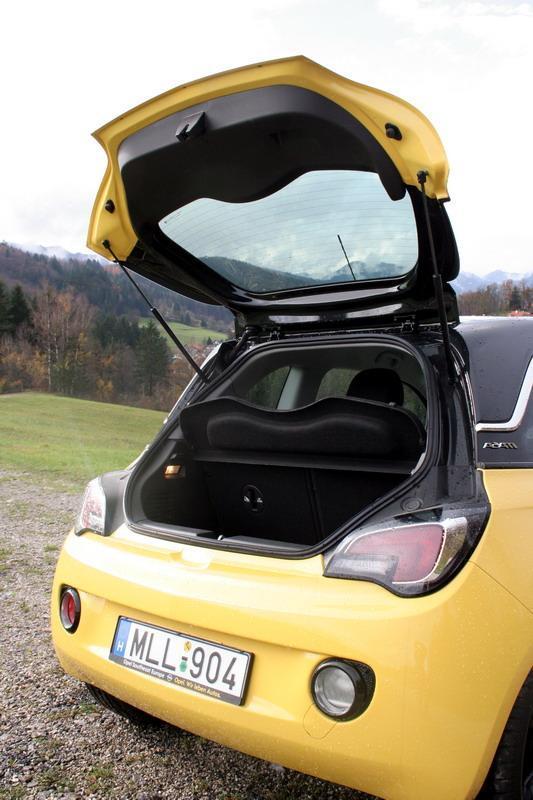 Pa ne samo zaradi majhnih vrat prtljažnika ampak tudi zaradi dobro skritega gumba za odpiranje. No, potem ko že pridete do njega najprej s strahom zadržite odpirajoče se vrata, ki ob močnejšem nihaju zadrhtijo kot bi bila iz papirja. Visok nakladalni rob in ozka odprtina pokrita s polico, ki dvignjena zastira pogled nazaj, če jo ročno ne spustite, le še potrdijo, da je Adam majhen avtomobil.