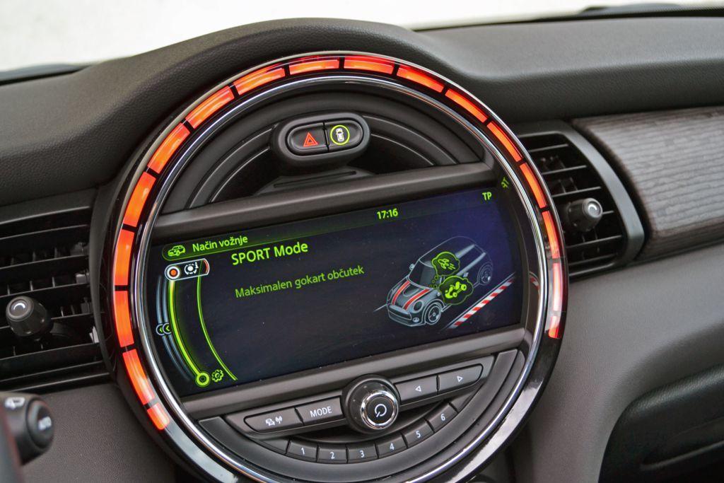 S tretjo generacijo ga je MINI mogoče malenkost malo izgubil. Števec hitrosti ni več v velikanskem krogu na sredini armaturne plošče in s sabo MINI vozi, za moj okus, preveč tehnološke krame. Le kdo potrebuje radarski tempomat, osvetlitev z ulic Las Vegasa, varnostni ščit in navigacijo? Če vam je vse našteto všeč, potem boste ‘lajkali’ tudi kvaliteto izbranih materialov, športne sedeže, ozvočenje Harman-Kardon, panoramsko strešno okno in še kopico malenkosti, ki sem jih odkril. Verjetno ne čisto vse.