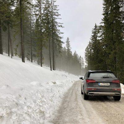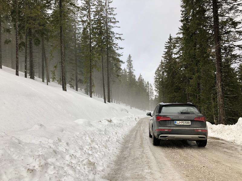 Štirikolesni pogon Quattro suvereno opravlja svojo nalogo, tako na makadamskih poteh, kot tudi na zahtevnejših strmih terenih ali spolzkih podlagah, kar sem dodobra preizkusil na Pohorju, pokritem z zimsko odejo. Z vklopljeno elektroniko je strah odveč, vešči vozniki, pa se bodo ob izklopu le te še malenkost pozabavali v snežnih vragolijah, saj se pogon v razmerju 60:40 prenaša na zadnji kolesni par.