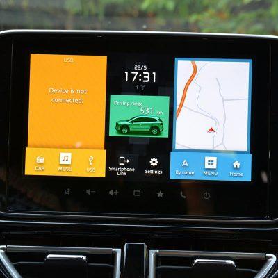 V notranjosti je urejeno zasnovana armaturna plošča. Pozornost vzame osrednji zaslon na dotik, ki z enostavnim vmesnikom ponuja vse, kar boste kot voznik v avtomobilu potrebovali…navigacijo, povezljivost ter preslikavo pametnega telefona, predvajanje skladb z različnih medijev…delovanje zaslona ter sistema deluje s svetlobno hitrostjo v primerjavi z windowsom xp.