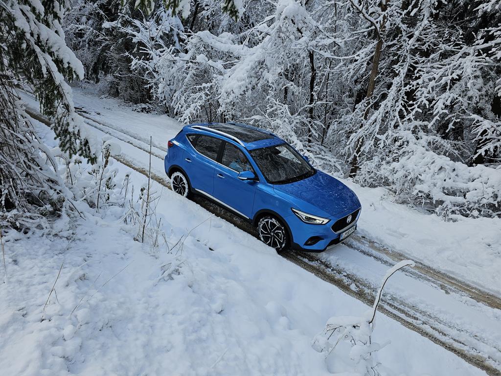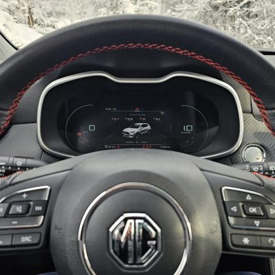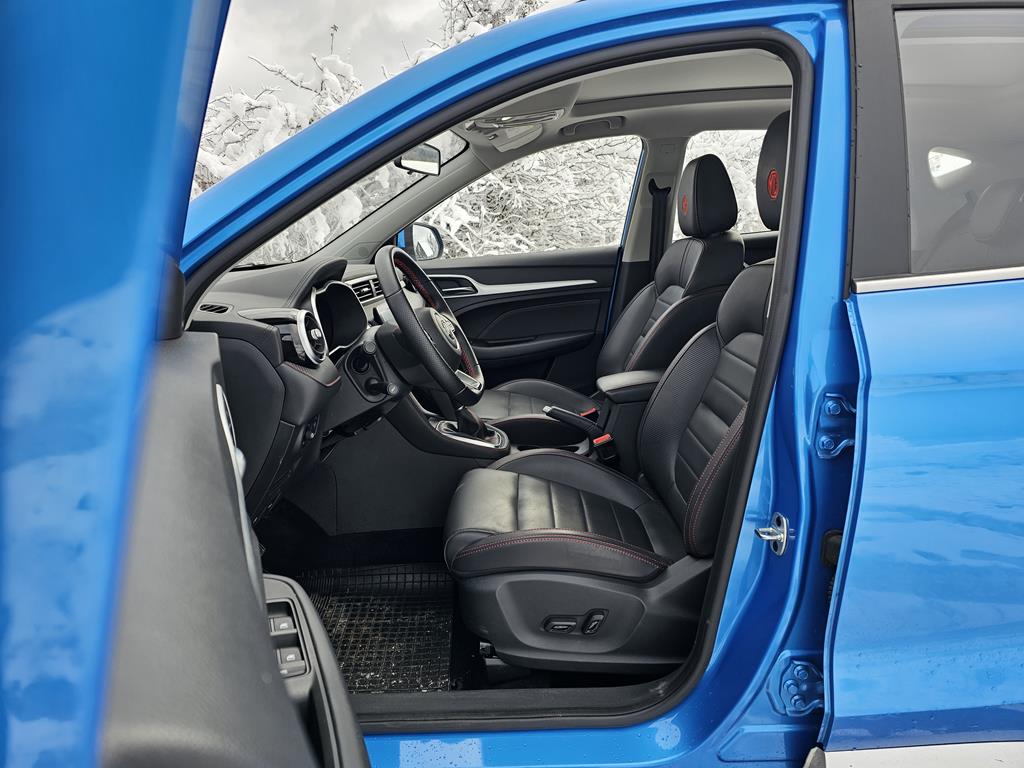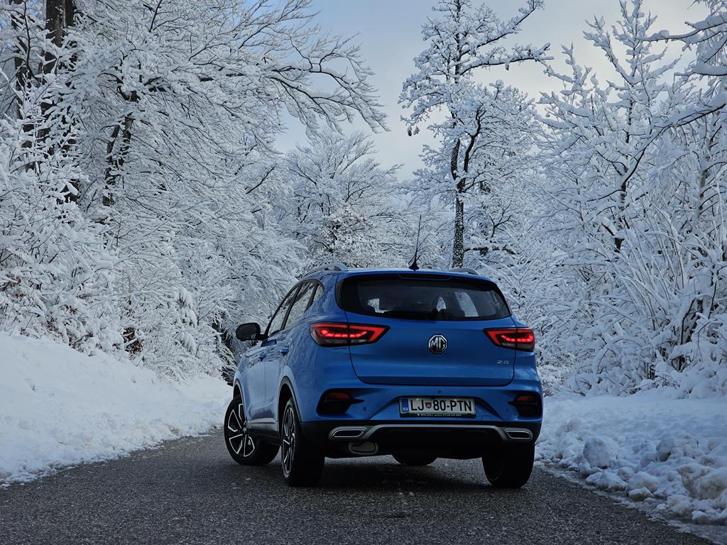 Za začetek z obliko, ki je še vedno dovolj prepričljiva in všečna, kot se za sodobnega SUV-ja spodobi. Testnež je bil odet v čedno Como modro karoserijsko barvo, ki lično poudari kromane strešne nosilce, vratne kljuke in terensko oblikovana odbijača. Celotna zgodba je zahvaljujoč 17-palčnim športnim platiščem nadpovprečno korektna. Videz, ki ne kriči in s prstom ne kaže nase, temveč dovolj samozavestno pelje tudi ob boku bistveno dražjim tekmecem. In prav tem lahko MG ZS pošteno meša štrene, saj se zgodba zares prične šele v notranjosti kitajskega družinskega SUV-ja, a vendarle z nekaj kompromisi.